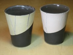 黒いマット釉薬との掛け分けた黒釉彩泥。