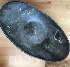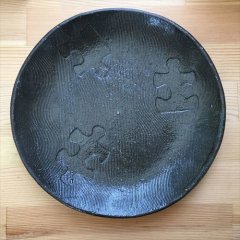 岡田陶工房/信楽焼/ジグソーシリーズ/パズル楕円皿(大)/ブラック×ホワイト/27X20