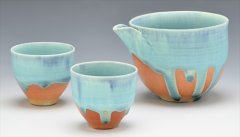 空や海を想わせるブルーの釉薬と赤茶のコントラストが大変美しい、「碧彩」シリーズ。
