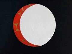 スタイリッシュな白に、白と赤でほどこされた月型。